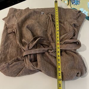 Len.Ok Linen Long Dress Tan Lagenlook Belted Waist Midi, Size L Altered Read