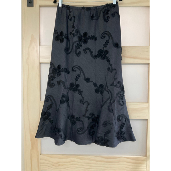 Lena Gabrielle Black Gray Floral Burnout Midi Skirt Size 10 Lined Elegant