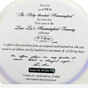 Lena Liu Collector Plate "The Ruby Throated Hummingbird" 1st Issue Plate #4498D