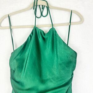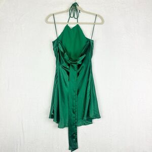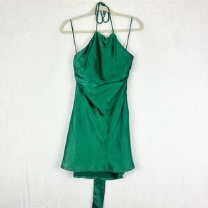 Lena Satin Bow Back Halter Mini Dress Size Medium Kelly Green Special Occasion