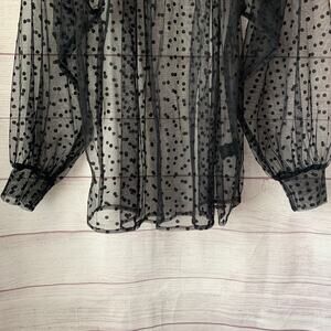 Lena Sheer Black Polka Dot Blouse with Long Bishop Sleeves Size Large