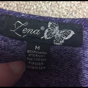 Size medium Lena three-quarter sleeve sweater. Heathered purple color. Elastic on the sides. V-neck. Very cute and in excellent condition!