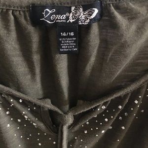 In Great Condition made of 65% Polyester & 35% Rayon color is a Olive Green and size 14/16 Machine washable