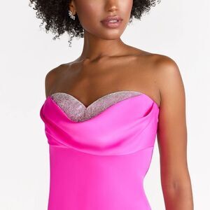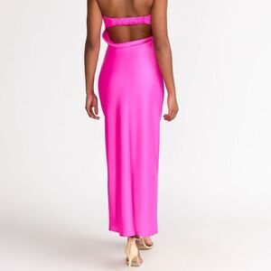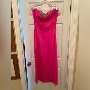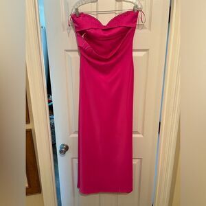 This listing is for a NWT's Lena Strapless Cowl Neck Satin Maxi Dress in hot pink, in size medium. This dress is absolutely beautiful! Look absolutely gorgeous in this strapless dress. Perfect for the prom or gala, this flowy satin dress embraces feminine and sophisticated vibes. Please see photos for measurements.