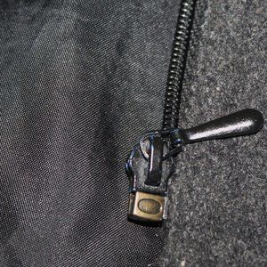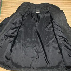 Fabric tag removed but feels like a soft blanket wool. Charcoal gray. Drawstring waist. Zip and velcro closure. Pockets on either side. Timeless well made staple. Tagged as an A 38 which should translate to a US 6. Be sure to view measurements to ensure fit. Excellent condition. Please note optional hood not available. Smoke free fast in most cases same day discounted shipping