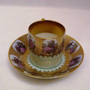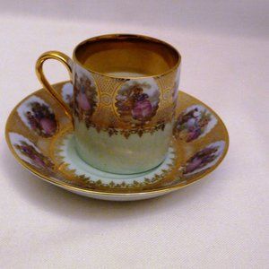 •Fine porcelain deimtasse cup and saucer set by the Leni Parbus Company