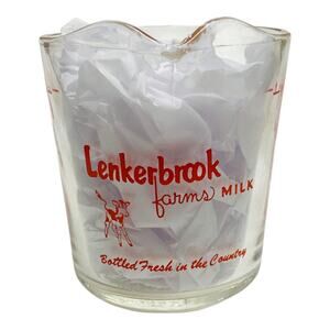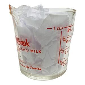 Vintage "Lenkerbrook Farms Milk" Advertising Piece, Red Lettering #496 Anchor Hocking Fire King Measuring Cup 1 Cup Capacity - A1049