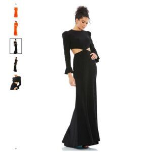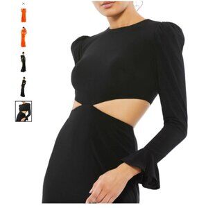 Mac Duggal Black Sexy Long Sleeve Puff Shoulder Cut Out Gown Ieena Dress