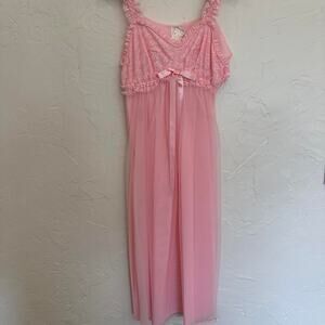 Lenner Shops Women's Small Dress Pink 1950s Nylon Chiffon Babydoll/Nightgown