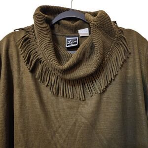 Lennie Fringe Cowl Neck Sweater - Women's XL - Green Pullover