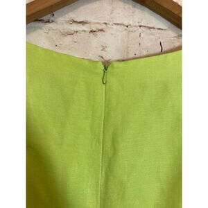 Lennie NY Dress Womens 12 Midi Linen Neon Green Black Colorblock Sheath Zip Up