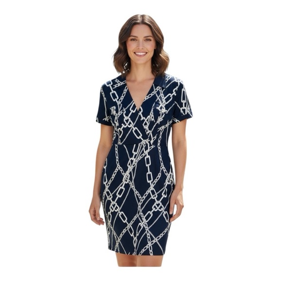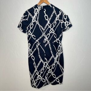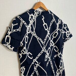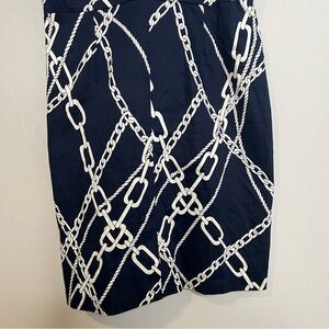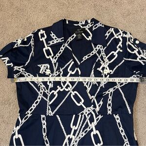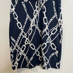 Lennie for Nina Leonard Cotton-Blend Chain-Print Nautical Dress. Size 16. Please see photos for measurements and material content. This dress is pre-owned but GOOD condition. (There is some slight color transfer on the collar, listed in photos).