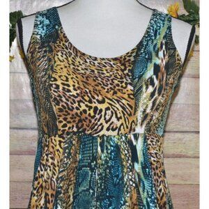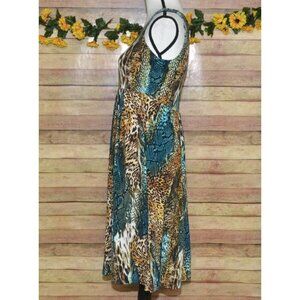 Lennie for Nina Leonard Mixed Animal Print Midi Dress Size S Empire Waist Comfy