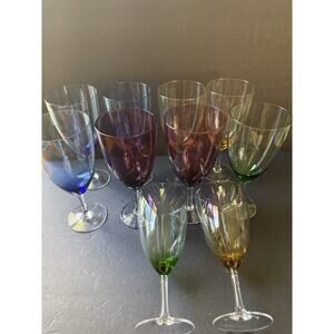 Lennox Crystal Gems Wine Glass Set 10 Rainbow MCM Cocktail Barware Minimalist