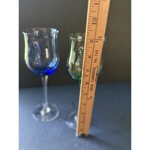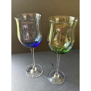 Lennox Gems Tulip Wine Glass Set 2 Stem Colorful Cocktail Barware MCM Minimalist