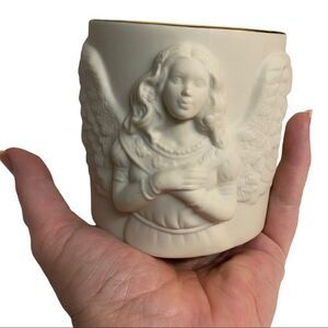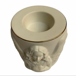 A celebration of the season, the Radiant Light Angel Votive features a beautiful angel with flowing hair. Crafted of creamy porcelain, this lovely votive is trimmed in gold. A tea light is included. Makes a wonderful hostess gift.