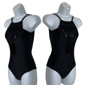 Lenny Niemeyer Crochet Tassel One Piece Swimsuit S Black High Neck Full Coverage