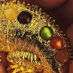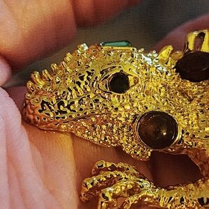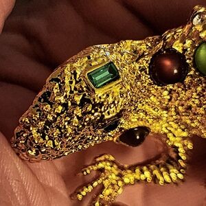 Lenny The Lizard Chameleon Gecko Reptile Brooch Gold Tone Jewel Tones Large EUC