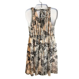 Brand New with Tags Lenon Swing Dress Blue Cream Floral V Neck Ruffle Waist Back Tie Lightweight Flowy BOHO MSRP: $95