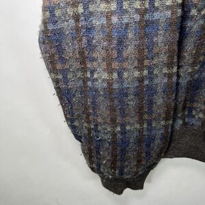 The Lenor Romano 100% Merino Wool Crewneck Sweater in Men's Size Medium features a stylish geometric knit pattern, making it perfect for casual, travel, or party occasions. This sweater has a crew neck and long sleeves, providing a comfortable fit for everyday wear. Made of high-quality wool fabric, this sweater offers a classic and timeless style that is sure to make a statement. The multicolor design adds a touch of personality to the piece, while the tight-knit construction ensures durability and warmth. Ideal for those who appreciate quality craftsmanship and unique designs.