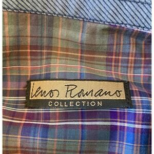 Lenor Romano Men’s Blue Plaid Long Sleeve Button Up Shirt Size 2XL
