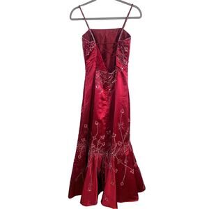 Stunning Lenovia formal dress in a size XS. This dress features a beautiful mermaid style bottom that will make you feel like a true star. The intricate beading adds a touch of elegance and sparkle, while the lace-up back ensures a perfect fit. The beaded straps provide additional support and style. The dress is fully lined for your comfort.