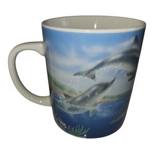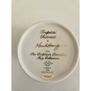 Lenox 1994 Tropical Retreat by Minh Hang from Dolphin's Paradise Mug Collection. Fine porcelain. Hand crafted in Japan. Features playful dolphins. Cute collector's mug.