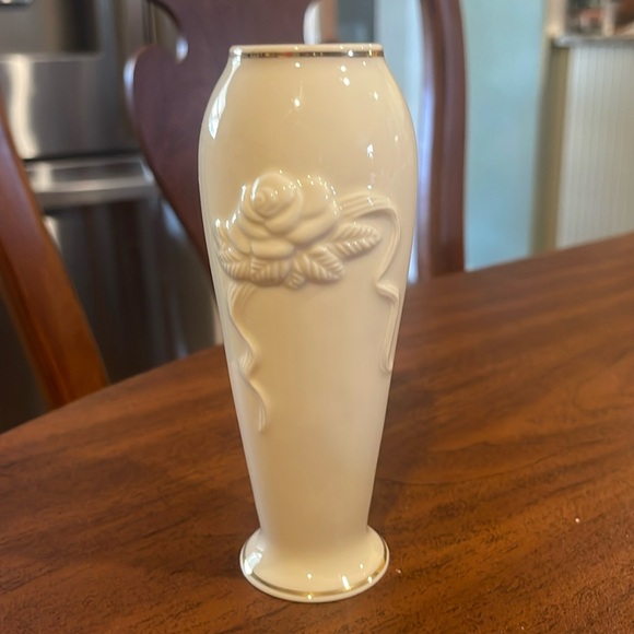 Adorable bud case made by Lenox with gold accent trim. Measures 6 inches in height.