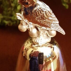 This original work of art is 36th in the series and was created exclusively by Lenox. The musical bell is handcrafted and plated in pure silver and features a partridge in a pear tree atop the bell. The bell plays Twelve Days of Christmas. -Overall dimensions: 3.75'' Height