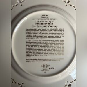 Lenox Annual Limited Edition Colonial Bouquet Pennsylvania the Seventh Colony