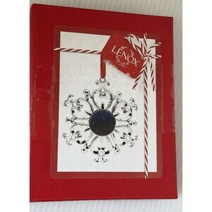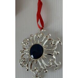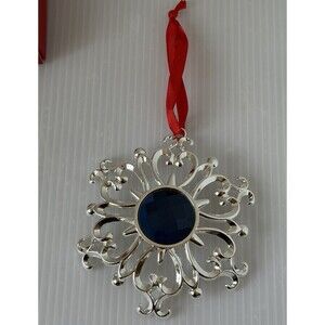 Silver plate snowflake ornament by Lenox with blue sapphire color center bejeweled series