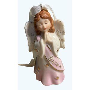 Lenox "Believe" Porcelain Angel Christmas Ornament White & Pink