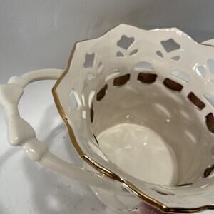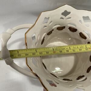The Lenox Bethany Basket "Tied with Love" Ceramic Vase is a medium-sized decorative collectible piece with a beige color and a basket pattern. This vase is designed in a country style and is made of ceramic, making it a charming addition to any home decor collection. The vase is signed by the renowned Lenox brand and does not require any additional parts for display.