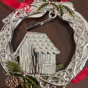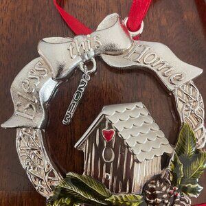 Lenox Bless This Home 2013 Annual Ornament Bird House Wreath Silver Metal!