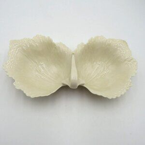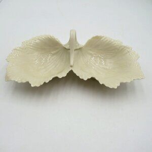 Lenox Bowl Candy Dish Cream Leaf Shaped Ceramic Divided Made in USA