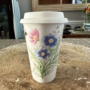 Lenox Butterfly Meadow Flutter Thermal Travel Mug Porcalain 10 oz