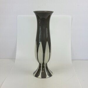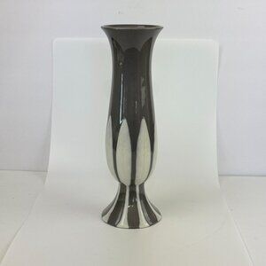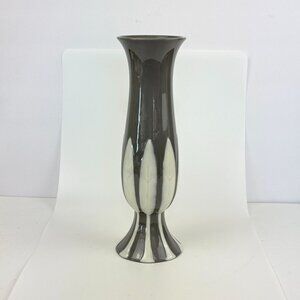 Lenox Ceramic Art Deco Style Gray And White Vase 10.5" Fluted