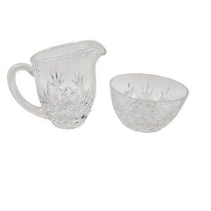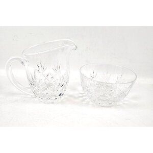Lenox Charleston Crystal Creamer Sugar Bowl Set Clear Diamond Pattern Vintage