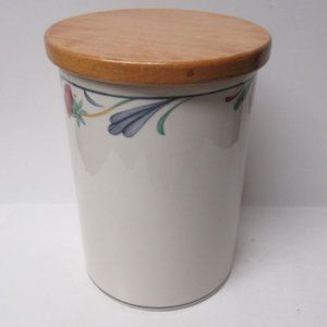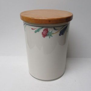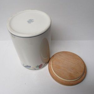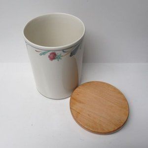 This is a really nice Poppies on Blue 7 1/4 inch high Canister with original wooden lid made by Lenox China. This Canister and lid are in very good condition with no chips, cracks or scratches. The lid has the original gasket seal. The canister is signed on the bottom: LENOX CHINASTONE - POPPIES ON BLUE - MADE IN U.S.A. Be sure to search our other Lenox China available.