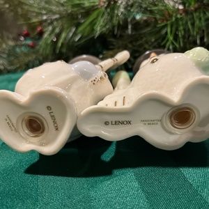 White ceramic w/ gold trim Lenox Salt & Pepper Shakers Snowmen. Only used for decoration, never for salt & pepper.