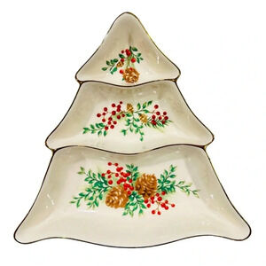 Lenox China WILLIAMSBURG BOXWOOD & PINE Large Tree-Shaped Dish Great Condition