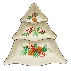 Lenox China WILLIAMSBURG BOXWOOD & PINE Large Tree-Shaped Dish Great Condition