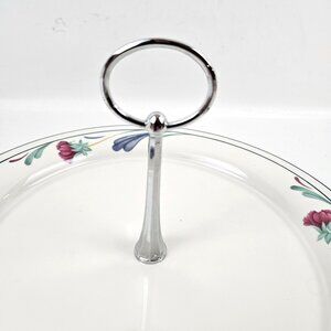 This Lenox Chinastone serving plate is both stylish and functional, featuring a floral pattern and a practical handle. Microwave and dishwasher safe, it's ideal for serving desserts or appetizers. With its elegant design, it adds charm to any dining setting, making it a versatile addition to your tableware collection.