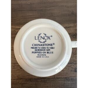 This Lenox Chinastone Poppies on Blue Porcelain coffee tea cup mugs is a vintage piece featuring a round shape and a beautiful poppy pattern in blue. With a glossy finish and the ability to be machine washed and freezer safe, these tea mugs are perfect for all occasions and are ideal for both men and women. The American floral theme adds a touch of elegance to the timeless design of these tea mugs.