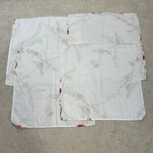 4 cloth napkins in the Chirp watercolor bird print. Good condition but one does have a faint mark as shown in the last photo.