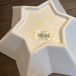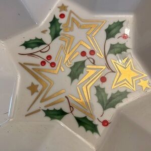 Here is a beautiful Lenox Christmas Holiday Star Shaped Candy Dish -Stars, Holly & Berries-11"x2.75" never used just displayed in my china cabinet