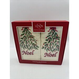 Lenox Christmas Tree Finger Tip Towels Noel NIB Set 2 Gift Bathroom Home Decor