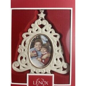 Lenox Christmas Tree Photo Frame Porcelain Ornament Gold Trim Classic Scroll New