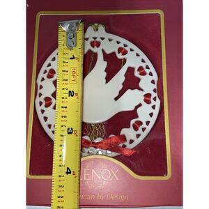 Lenox Christmas Wrappings Dove Hanging Ornament Hearts Red Ribbon NEW