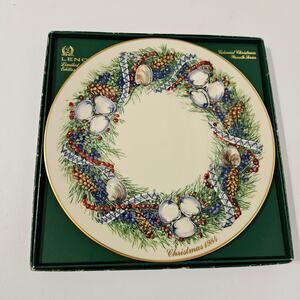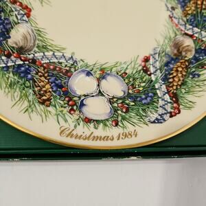 Lenox Colonial Christmas Wreath Plate 1984 Limited Edition Rhode Island Blue Red
